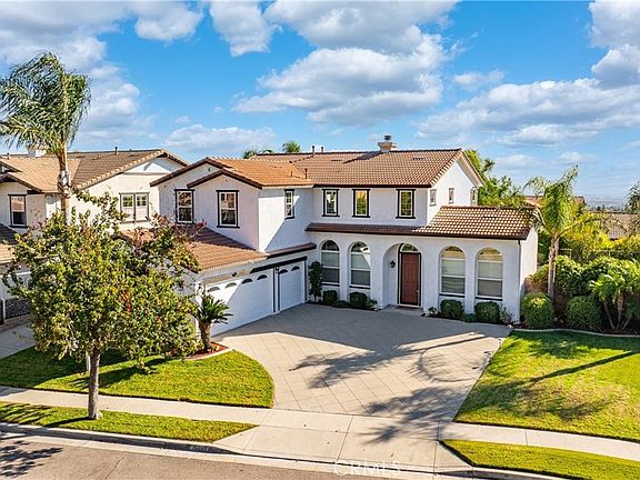 Beautifully upgraded and move-in ready, this stunning 4-bedroom pool home sits on a quiet and safe cul-de-sac, offering breathtaking views of the mountains and city lights. Recently renovated, the property features fresh exterior and interior paint, brand-new luxury vinyl wood-like flooring, and a newly finished epoxy garage floor, giving the entire space a clean, modern feel. Step inside to an open and airy two-story floor plan with soaring ceilings over the formal entry and living room, filled with natural light and plantation shutters and crown moldings. The formal dining area connects to a spacious family room with a raised-hearth fireplace, built-in media center, and large windows overlooking the sparkling pool and patio. The kitchen is a chef’s dream, showcasing granite countertops, stainless steel appliances including double ovens, a center island, reach-in pantry, and a sunny breakfast area. Upstairs, the expansive primary suite features panoramic city-light views, a luxurious bathroom with soaking tub, separate shower, dual sinks, and a walk-in closet. All bedrooms offer crown molding, and north-facing windows framing the mountain views. The backyard is an entertainer’s paradise with a covered patio, pool, spa, outdoor shower, manicured lawns, and a gated side yard perfect for potential RV parking. Located within the highly rated Etiwanda School District — John L. Golden Elementary, Day Creek Intermediate, and Los Osos High School — all three schools are within walking distance, allowing children to attend from elementary through high school without ever changing neighborhoods. With no HOA and low property taxes, this home combines elegance, comfort, and outstanding value in one of Rancho Cucamonga’s most desirable communities. Close to Victoria Garden, Ontario international airport and 210,15 freeway.