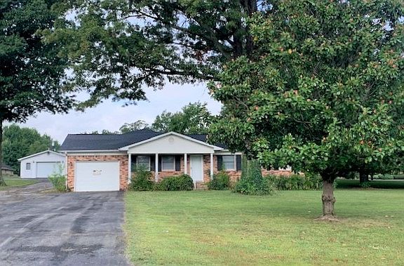 This great brick/vinyl ranch style home has 1693 square feet of living area with three bedrooms and 1 3/4 baths. The living room and the breakfast room have nice built-in cabinets for books, collectibles or treasured items. There are Andersen thermopane windows, hardwood/vinyl/carpet flooring, central heat and air on natural gas new in 2002, wall oven and microwave oven new 2014, architectural roof new on house and buildings in 2013. The 30 gallon natural gas water heater was also new in 2013. The one car attached garage has an opener and the house exterior has brick and vinyl siding and aluminum fascia and soffit and guttering too. Two detached buildings are 20 X 22 and 32 X 28 with larger one having two garage doors with openers and finished interior. Asphalt driveway circles all around the house from the buildings to the side street. There are also some fruit trees that have produced delicious fruit. Located outside city limits but has county water, county sewer and natural gas!