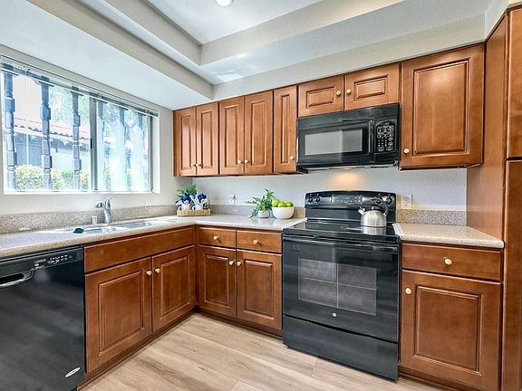 Turnkey ground floor unit in Bernardo Villas, where you'll enjoy many relaxing hours on your private patio adjacent to the Rancho Bernardo Inn Golf Course. Spacious master suite also has a slider to the patio. Upgraded cherry cabinets in kitchen & both bathrooms as well as granite countertops. Vinyl plank flooring looks incredible! Central AC. Community welcomes residents of all ages, and is located in the Award-Winning Poway Unified School District. HOA includes water, trash, sewer and now even high speed internet & cable with 100+ channels. In addition, you have access to all the Rancho Bernardo Swim & Tennis Club offers for a nominal fee which has a clubhouse, 2 pools plus a children's pool, playground, pickle ball courts & workout facility! Quick access to the 15, but far enough not to hear it, and minutes to RB Business Park on the other side of the freeway. Nearby you'll find numerous grocery stores, shopping, restaurants and medical facilities. Convenient location to all!