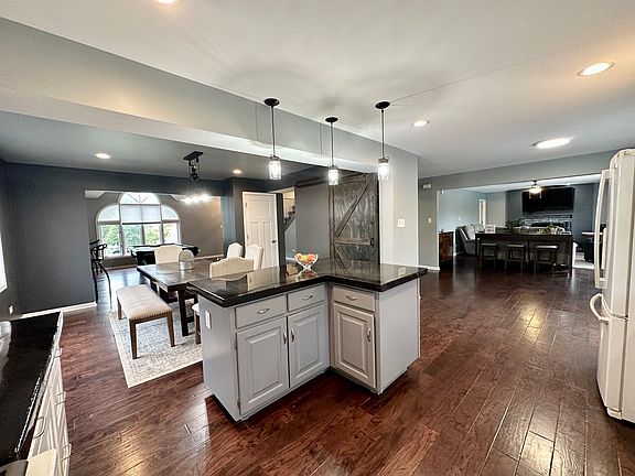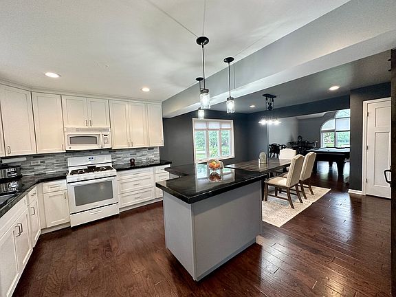 You will love with this modified Fane 2 story in Blackthorne Ridge Subdivision in Mokena! 5 bedroom 2 story home on an extra large fenced in lot! Kitchen has been upgraded in 2017 and opens up into the dining area and family room. Upgraded white cabinets, custom concrete counters with epoxy finish. Hardwood floor spans the main level. Family room with brick fireplace. All vinyl windows replaced in 2022 and the front living room window has new sash. Roof new in 2019. Full finished lookout basement with rec room, office, exercise room, storage room with work bench & rough plumbing for another full bath. 3 car garage with heater. Most of the home has been freshly painted in 2020. Updated main level powder room. Large loft upstairs with wood look floor overlooks the vaulted living room. Vaulted master bedroom with 3 closets. All appliances stay and the 2nd fridge in basement stays. Yard features 2 tier deck, 30' round pool, large shed and inground sprinklers. New Lenox Grade Schools and Lincoln-Way Central High School. Less than 5 miles to I-355, I-80, Silver Cross Hospital, restaurants, shopping and 2 Train stations.