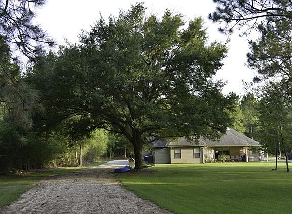 Bring the rocking chairs & prepare to unwind on your back porch, overlooking this attractive 100' x 300' lot featuring a gorgeous live oak. This well-maintained home looks brand new. Custom blinds/shades throughout. Granite counters in kitchen. Oversized ceramic tile for easy upkeep. Private master suite w/2 vanities & large closet. Includes 5.5 kw generator, refrigerator & great room TV. High & dry & set to become flood zone "X" with new flood maps. Minutes north of I-12. Rare, young home on oversized lot!