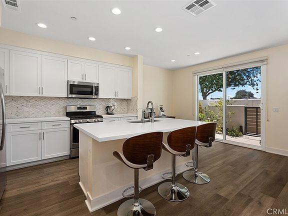 Gorgeous and Inspired 3 Bed, 3 Bath End-Unit Home. Open Floor Plan with Upgrades Throughout. Gourmet Kitchen with Huge Island + Sink, Stainless Steel Appliances Featuring GE Sensor Microwave, GE 5-Burner Gas Cooktop with Oven, LG Quadwash Thin Q Dishwasher, Large Firehouse Sink. Granite Counter Tops, Walk-in Pantry. Beautiful Laminate Floor Throughout First Floor. 3 Spacious Bedrooms with Beautiful Natural Light. Master Bedroom with Walk-in Closet, Dual Sinks, Glass Shower Door, Slow-Close Drawers. Custom Window Coverings Throughout. A/C, Recessed Lighting, Dual Pane Windows. Upstairs Laundry Room with Convenient Sink and Cabinets. Lovely Backyard Patio Area. Attached 2-Car Garage with Custom Cabinets and Extra Storage. Convenient Location close to Shops, Restaurants, Disneyland, Angels Stadium, The Outlets of Orange.