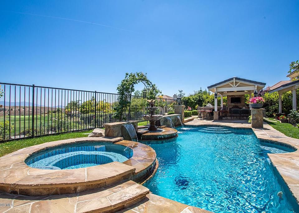 Beautiful single-story, 4 bedroom, 4.5 bathroom, & 4,035 square foot property on the Hole 3 tee-box in the Country Club Estates! The French country-inspired facade beckons you through the private courtyard to the elegant front entry. Upon entering, you will find the formal living room with backyard & fairway views. Continuing down the hall, you are greeted by a Chef's kitchen, boasting granite countertops, expansive island & breakfast bar, Viking appliances, built-in refrigerator, 6-burner range, 2 dishwashers, & walk-in pantry. Adjacent to the kitchen is a breakfast nook as well as a large family room with built-in entertainment center. Down the hall, 3 ample bedrooms with their own private bathrooms await your guest's arrival. On the opposite end of the home is the immense master suite, complete with sitting area, dual-side fireplace, & patio access, as well as an enormous master bath with Jacuzzi tub & glass block shower, large vanity area, & oversized walk-in closet. Stepping outside reveals a lush garden, pool & spa with water features, entertainment area with built-in BBQ, fireplace & flat screen TV. Additional features include two separate 2-car garages, solar (owned), and Smart Home connectivity. This estate is a true Hole-in-One! 2019-10-24