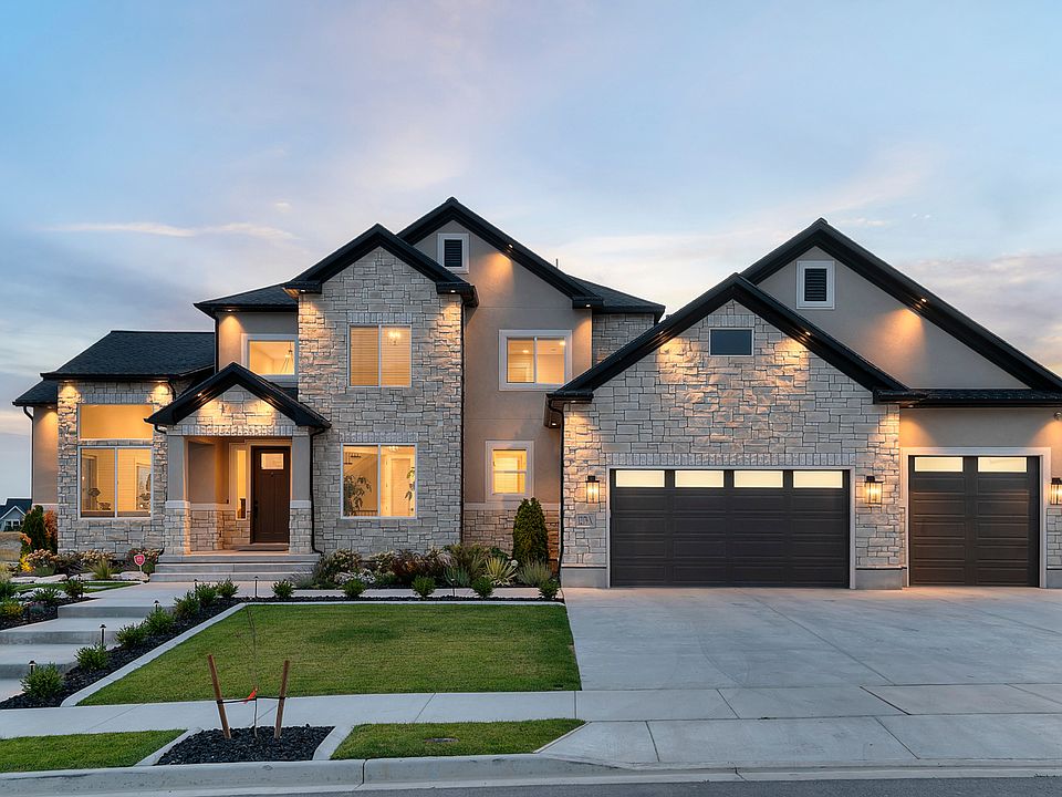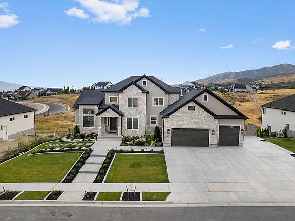 Price Reduction! Welcome to this stunning custom-built home in the highly desirable Highland area, offering breathtaking Mountain View's and nearly 5,800 square feet of thoughtfully designed living space. Built in 2023, this home features 4 bedrooms, 3.5 bathrooms, and two additional rooms in the basement that could easily be converted into bedrooms with closets. Step inside to find $160,000 in builder upgrades, including premium flooring, upgraded granite countertops, floor-to-ceiling cabinetry, custom closets, and an extensive lighting package. The open-concept kitchen and living area showcase soaring ceilings, designer finishes, and a cozy fireplace, perfect for gathering with family and friends. A private owners retreat includes a custom-built fireplace and bathroom with upgraded cabinetry. The fully finished basement offers 10-foot ceilings, a walkout design, a dry bar, a third fireplace, and a large shop-creating the ideal combination of entertainment space and functional workspace. The garage is fully insulated and finished. Smart-home features like app-controlled blinds, a reverse osmosis system, water softener, and hospital-grade filtration add comfort and convenience. Step outside to your private oasis, with over $260,000 invested in landscaping. The professionally designed retaining wall transforms the sloped lot, allowing you to fully enjoy and use the entire backyard. Additional outdoor highlights include stamped concrete patios, a waterfall feature on a timer with a Koi pond, drip-line planters, and a gazebo. Exterior upgrades also include stone veneer, enhanced lighting, and a beautiful exterior entrance that adds to the home's curb appeal. With its ideal Highland location, luxury finishes, and unmatched outdoor living space, this home is truly one of a kind.