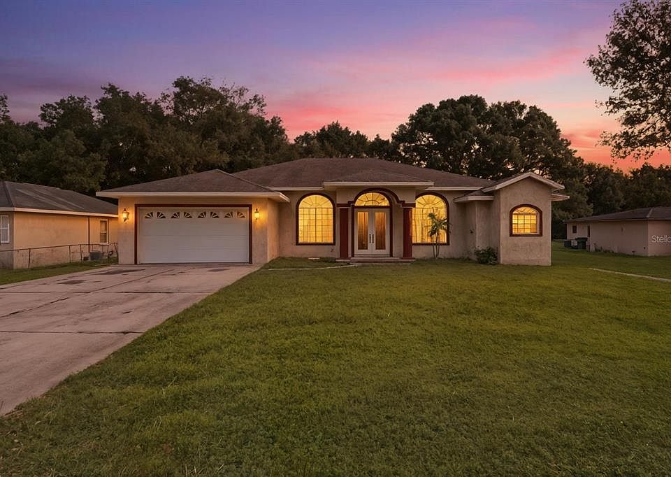Welcome to this beautifully built home in a super convenient Winter Haven location. Its central position makes it easy to get anywhere you need to go. You are close to Legoland, an easy drive to Disney attractions, and have quick access to Florida's beaches, shopping, restaurants, and everyday essentials. Inside, the home features an impressive open concept design with soaring 12 foot ceilings, 10 foot doors, and tile flooring throughout. The spacious living room flows naturally into the kitchen and dining area, creating a bright and comfortable central living space. A triple sliding glass door in the living room opens to the large screened back porch, adding even more room for relaxing or entertaining. The split bedroom layout provides excellent privacy. All bedrooms include walk in closets, and both bathrooms are generously sized. The primary bedroom is very spacious and also includes direct access to the screened porch. The guest bathroom features a convenient door to the porch as well, perfect for outdoor gatherings or future pool access. Walking into the home, you are greeted by a welcoming foyer. To one side sits a flexible front room that can serve as a formal living room, office, playroom, or den. Straight ahead, the main living room opens beautifully to the kitchen, which offers plenty of room for a dining table. There is also a separate formal dining room, giving you multiple options for hosting and everyday meals. A two car attached garage provides added storage and convenience. This home was built with thoughtful design, solid construction, and a layout that truly works for everyday living. With its central location and wonderful interior space, it is an excellent opportunity for anyone looking for a well built home in Winter Haven.