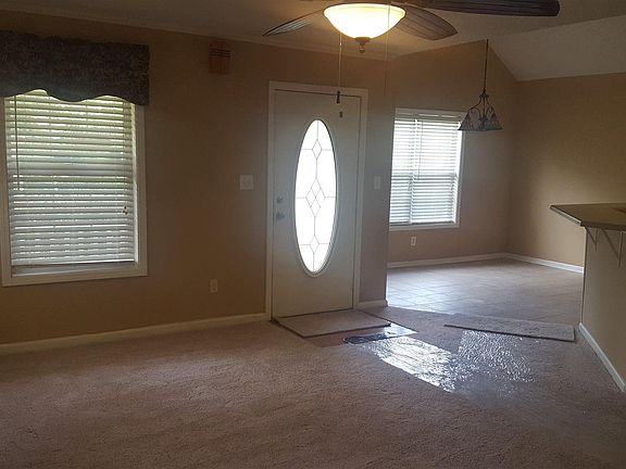 GORGEOUS 3 bedroom 2 bath all electric RANCH STYLE HOME that's move in ready! NEW INTERIOR PAINT! NEW CARPET! All sitting on a 1 ACRE lot with 248 ft. ROAD FRONTAGE. Large wrap around front porch, open concept feel with tall ceilings, beautifully stained kitchen cabinets in LARGE KITCHEN w/elegant back splash, OVER-SIZED kitchen sink, breakfast bar, sunny breakfast/dining area, and tile flooring in kitchen and baths. SPACIOUS GREAT ROOM offers fireplace w/marble landing. SECONDARY BEDROOMS offer plenty of room and closet space. HUGE MASTER BEDROOM with trey ceiling, CUSTOM WALK-IN CLOSET, and access to extended patio w/flower garden that's perfect for entertaining or grilling in your private backyard. Master Bath w/DUAL VANITY, garden tub, separate shower. Exterior has just been pressure washed. OVER-SIZED 2 CAR GARAGE with plenty of parking on long driveway....Got an RV or Boat...Park it in the FARM FENCED area of the 1 ACRE LOT... WELCOME HOME!!!