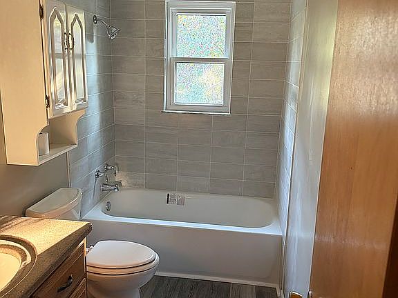 Welcome to this move in ready 3 bedroom, 1 bath home with so many updates!! All new light fixtures. Newly painted rooms and brand new carpet as well as an updated kitchen with freshly painted cabinets and butcher block countertops. Sturdy brick home offers updated vinyl windows throughout with gas furnace and central air conditioning. 2 living rooms, a sunny breakfast nook, a large dining room perfect for family gatherings, and a recently renovated bathroom. Downstairs has a workshop and an open floor plan making a clean slate that could be transformed into a basement oasis. The backyard offers a pool and trampoline all within a fenced yard. Ample parking space in the driveway as well. This house has a great layout and could be a fantastic home for a growing family. All of this for just $155,000!!
