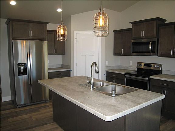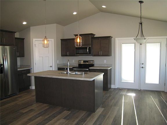 This new One Level No Step home features 3 bedrooms 2 bathrooms Vaulted living room sliding door off to Patio Cortex Plus Vinyl Lamanite flooring in living room and in Custom Kitchen with corner Pantry plus Luxury Plank Vinyl in the hallway to Master Bedroom with large walk-in Closet and Double vanities & large shower.Fenced Back Yard and full landscaping package. 3 stall over-sizes garage. Very Open Floorplan.