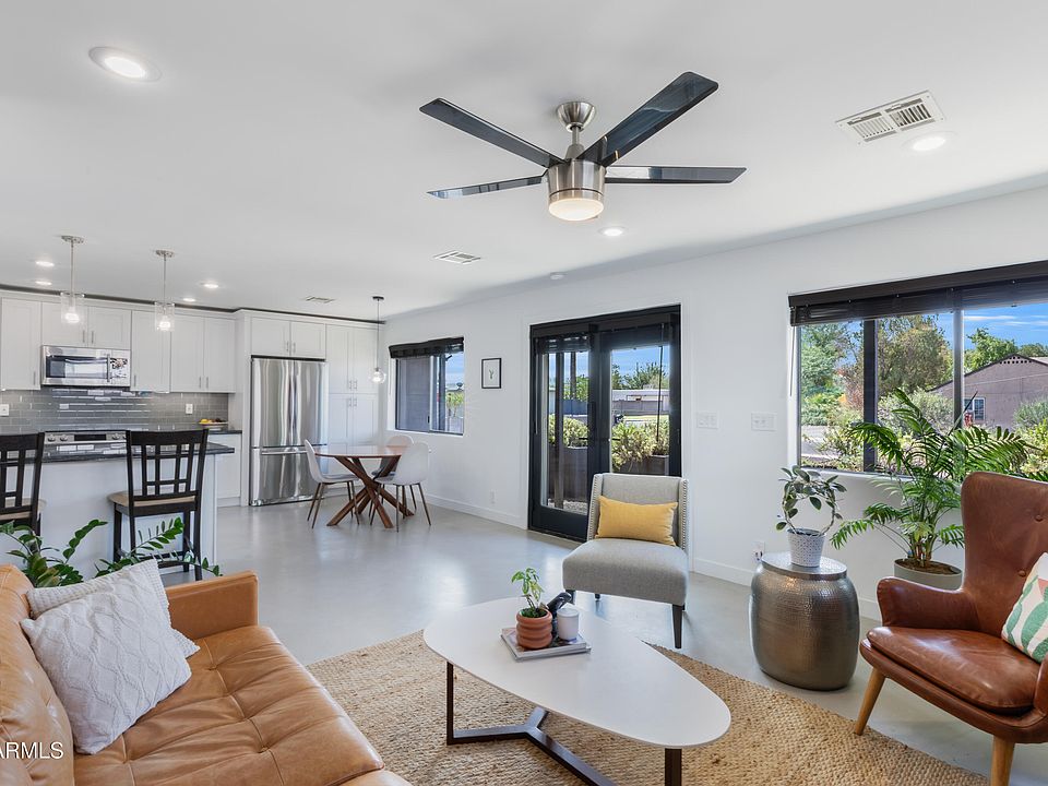 AVAILABLE NOW! Unfurnished, fully renovated 3-bed, 2-bath home in a convenient Phoenix location! This move-in-ready gem features an open layout, updated kitchen with quartz counters and stainless appliances, stylish concrete flooring throughout with contemporary finishes. The spacious primary suite includes a full walk-in closet with built in cabinetry and en-suite bathroom with large walk in shower. Step outside to your private desert oasis with a sparkling pool, fire pit, and lush landscaping perfect outdoor space for relaxing or entertaining. Close to shopping, dining, downtown PHX, Biltmore area, Sky Harbor airport and freeways! Indoor laundry room featuring full size washer/dryer and washing sink & storage. 12 Month Minimum or longer please.
