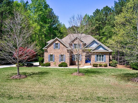 Special custom built brick home in the heart of Hardscrabble on 1.1 acre lot. 10 ft ceilings on main level. Chef's kitchen w/custom cabinetry, granite cntrs, center isle, dble ovens. wet bar. LR w/custom built-ins. Primary main flr bedrm get-a-way, luxury bath, & dual closets. Screened porch & oversized deck overlook private backyard. 3 generous sized addnl bdrms. Large bonus w/built-ins. Walk in storage. Active community w/swim/ tennis/ Clubhouse. Downtown Durham & Duke 25 min drive.