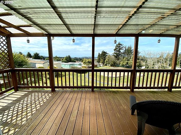 ***PANORAMIC OCEAN AND BAY VIEWS!!!*Come check out the view from this immaculately maintained 2 Bed, 2 Bath with possibly the best location in Puerto Vista Estates! New flooring throughout, recent updates, fresh exterior and interior paint. Nicely constructed covered decking to enjoy expansive sunsets and ocean views every day. Overlooking the park, ocean, and bay. Watch ships enter from Charleston Harbor all the way into Coos Bay. 3 room shed w/plenty of room for storage, crafts, hobbies, etc!
