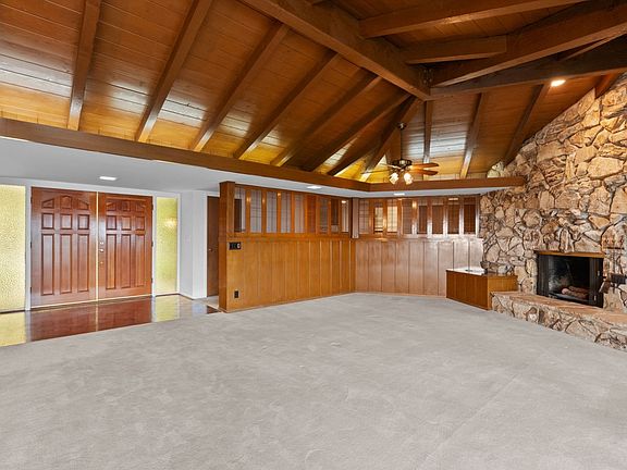 Welcome to 1218 Flintridge Avenue, a breathtaking sanctuary nestled in the picturesque city of La Canada Flintridge! This stunning mid-century modern single-family pool home exudes elegance and comfort, featuring 3 generously sized bedrooms and 3 beautifully designed bathrooms that seamlessly blend contemporary flair with inviting warmth. Set on an expansive 56,866 sq. ft. lot, this property is adorned with lush greenery, creating the perfect retreat for relaxation. A long, private driveway leads to a gated entry, providing ample parking and ensuring ultimate privacy. The meticulously landscaped grounds offer panoramic views of the majestic mountains, enhancing the serene atmosphere. Inside, the residence showcases enchanting beamed coffered ceilings and ambient lighting that create a bright and airy environment, complemented by charming ceiling fans that provide a refreshing breeze. The expansive living room beckons relaxation, complete with a cozy brick-walled fireplace inviting you to unwind. Plush carpeting graces the living room, dining room, and bedrooms, while sturdy hardwood flooring flows throughout the remainder of the home. The kitchen is a true culinary masterpiece, boasting a breakfast counter, built-in electric stovetop, double ovens, stylish range hood, dishwasher, and generous cabinet space?transforming it into an entertainer's delight. The inviting dining area is perfect for enjoying meals and is conveniently located near a tastefully designed half bathroom. The bright and airy bedrooms offer ample space for personalization, with the primary suite featuring a luxurious en-suite bathroom that includes a chic double sink vanity, spacious walk-in shower, separate bathtub, and bidet. The additional bathrooms showcase relaxing shower-in-tub combinations and another walk-in shower, while a dedicated laundry area with built-in storage enhances functionality throughout the home. Outside, your private backyard oasis awaits, complete with a sparkling pool and spa overlooking the city, providing breathtaking views, along with a private BBQ area and ample greenery, perfect for savoring beautiful weather and unwinding in tranquility. Located in a prime area, this home offers an unparalleled sense of privacy surrounded by lush landscaping while still being a short drive away from an array of restaurants and shopping centers, ensuring both convenience and tranquility.