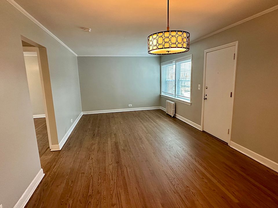 Large 2 bedroom with beautiful hardwood floors, updated kitchen with stainless steel appliances, large living room with separate dining area, off street parking possible for a monthly fee when available.