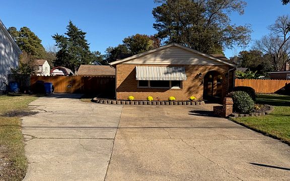 Gorgeous move-in ready brick ranch home with so many fabulous details! Covered front walkway under decorative arches opens to a beautiful floorplan with gleaming hardwood floors throughout (no carpet in this home). Huge living room with built-in entertainment system and electric fireplace. Truly light and bright space with lots of natural lighting too! Huge extra room could be formal dining room or another den space. Nice, eat-in kitchen with so many cabinets for storage and all stainless steel appliances. Home is noted as a THREE bedroom BUT there is a BONUS room that could be used for office, nursery, etc. Primary bedroom with bathroom included in count. Separate utility room with washer/dryer hook-ups. Ceiling fans throughout included huge covered patio! Also, truly a mechanic's delight with three car detached garage. Big privacy fenced-in backyard! Close to Virginia Beach, shopping, restaurants, shopping, more!