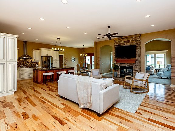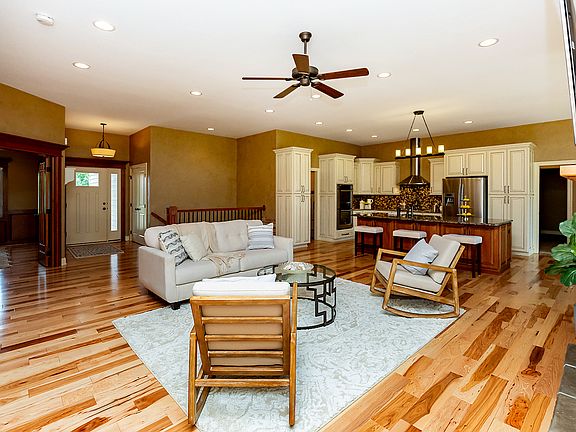 Beautiful Briar Creek neighborhood ranch home is full of upgrades! Whether you're looking for chef's dream kitchen, room to entertain, or all the extra details, this builder's home with amenities added through-out has it! Over 4,100 sq ft finished, 5 bedroom and 4 baths. Upscale kitchen features granite countertops, custom tile backsplash, softclose drawers and oversized island, 5 burner gas stove and double oven. Master with tray ceiling and ensuite includes double vanities, private Jacuzzi tub, heated floors, custom living area with bar, 2 bedrooms, bath and extra large store area. You'll love spending time with family and friends on the oversized multi-level deck, hot tub, natural gas firepit and professional landscaping. Too many details to share - you must come and see for yourself!