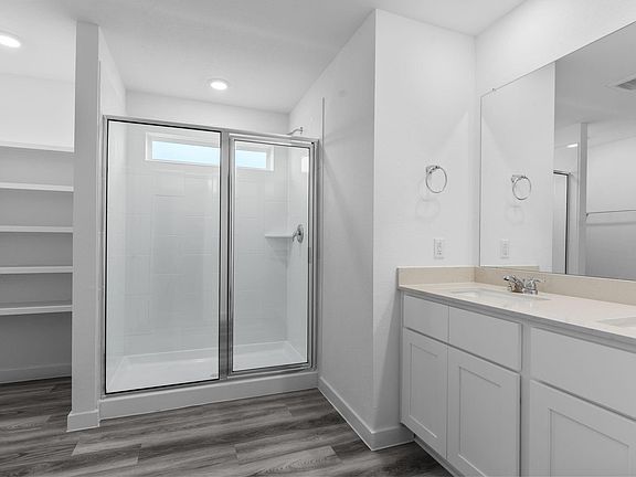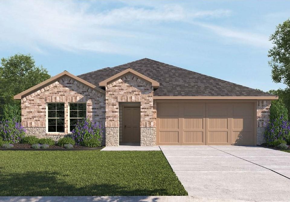 The Cali plan is a one-story home featuring 4 bedrooms, 2 baths, and 2 car garage. The long foyer with an entry coat closet leads to the open concept kitchen and breakfast area. The kitchen includes a breakfast bar with beautiful counter tops, stainless steel appliances, corner pantry and opens to the family room. The primary suite features a sloped ceiling and attractive primary bath with dual vanities, water closet and spacious walk-in closet. The standard rear covered patio is located off the breakfast area. This home includes full yard irrigation and sod, as well as our HOME IS CONNECTED base package which includes the Alexa Voice control, Front Doorbell, Front Door Deadbolt Lock, Home Hub, Light Switch, and Thermostat.