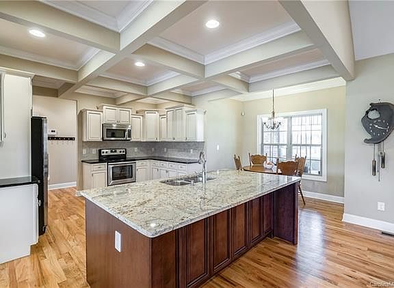 Beautiful Custom Ranch! The finishes in this home are exceptional! You'll fall in love as soon as you enter. Located on a fantastic large lot! The master suite is large and inviting, featuring a deluxe master bath covered in gorgeous travertine stone tile, rainfall shower-head!, large walk-in closet. Beautiful hardwood floors throughout! All baths and kitchen have granite counter-tops and gorgeous tile floors. The large gourmet eat-in kitchen features a large island, beautiful coffered ceiling,custom cabinets,granite tops and more! Family rm features an inviting fireplace and vaulted ceiling! Enjoy your screened-in porch which overlooks the large flat lot, a great place to relax and entertain. Whole Home Water Filtration System. Exceptional home! Must see!