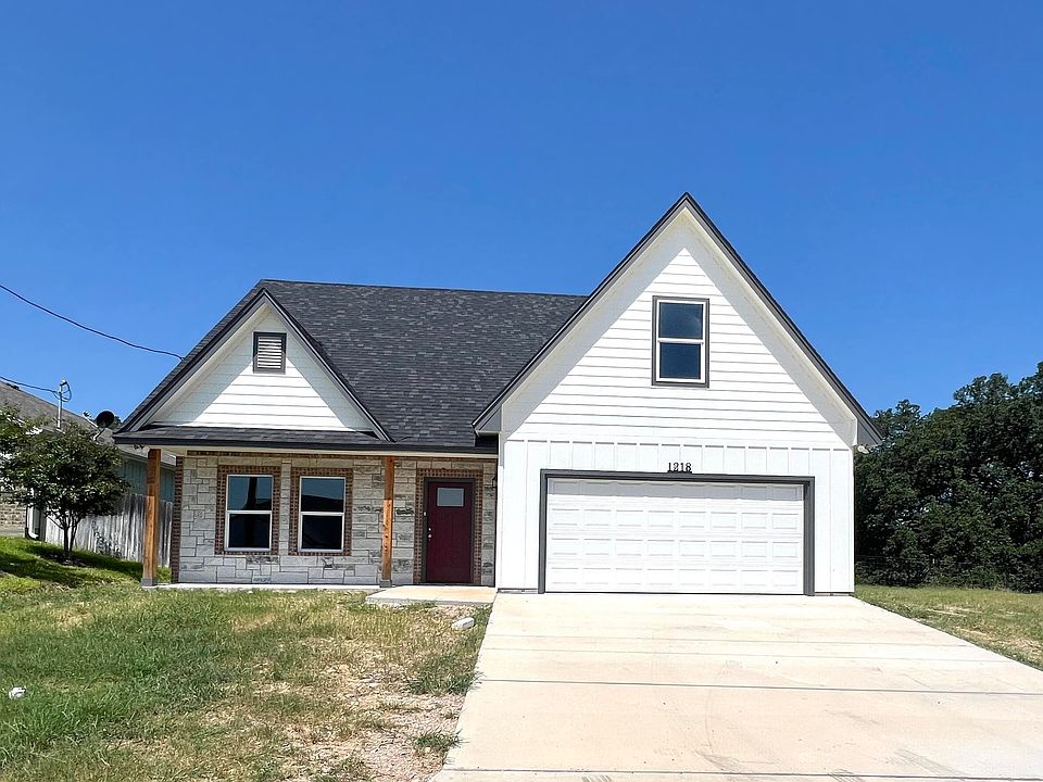 Welcome to this brand-new two-story home in the desirable Stone Valley Subdivision of western Lampasas. This thoughtfully designed floor plan features 4 bedrooms and 2.5 baths, with the primary suite conveniently located on the main level. The primary bath offers a walk-in closet, dual sink vanity, soaking tub, and separate shower. Also on the main floor is a spacious open-concept living room and kitchen with stained concrete flooring, granite countertops, and a convenient half bath. Upstairs, you’ll find 3 additional bedrooms and a full bath with beautiful luxury vinyl flooring. Additional highlights include a laundry closet on the main level, a 2-car attached garage, and walk-out attic access for extra storage.