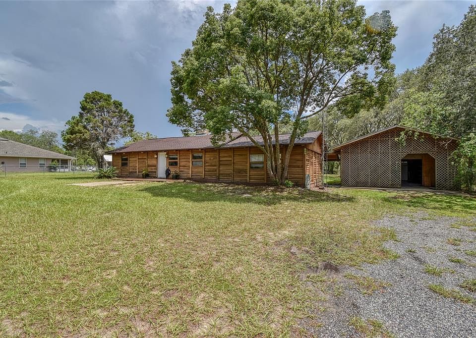 Dreaming of living the quiet country life? Look no further than this 3-bedroom 2 bath home on 1 fenced acre with 1,456 SF of living space. This cedar home has vaulted ceilings of beautiful wood. Home has new roof 2022 and new ac 2023. Only 15 minutes to shopping, restaurants and minutes to the beautiful Rainbow River. Wood burning fireplace, split bedroom plan, inside laundry. Attached workshop is perfect for all your hobbies and projects. On unpaved road, only .34 of a mile from paved road.