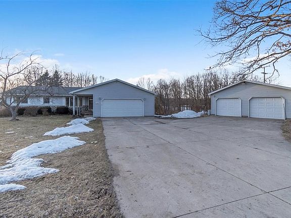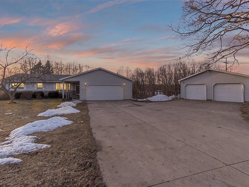 Recently repainted interior. Central air 2019. Aluminum no maintenance deck. Large kitchen with stainless steel appliances and granite countertops. Stone fireplace in family room and wood burner in lower walkout level. Newer roof shingles. Gorgeous views of winding Grand River from this hilltop 4.1 acre setting from deck and enclosed sunroom. Huge 4 car detached garage. Wet bar and 4th bedroom in w/o.