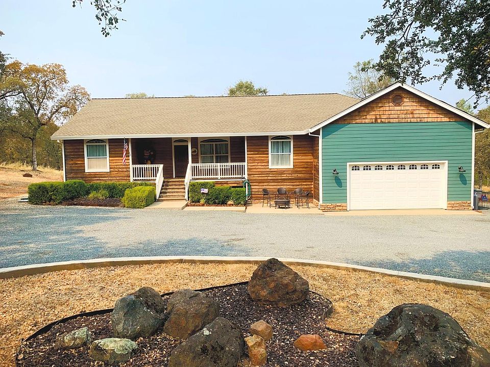 Welcome to your country retreat. Walk through the door to a large, vaulted ceiling great room that opens to the kitchen. French doors in the great room and primary bedroom lead to a covered back porch where you can enjoy the large back yard and views of the BVID irrigation ditch that runs through the property. Primary bathroom has a large tub for soaking in the view of the oak trees scattered about the yard as well as double sinks, large shower and walk in closet. The house offers a whole house fan for those cool country nights and a gas fireplace. Property is fenced and gated. The other two bedrooms are very nicely sized and share the hall bathroom, split bedroom floorplan. House comes with plans for a 30x40 shop approved by the County. You'll love the easy access to the many lakes nearby as well as the easy commute to Grass Valley and even Sacramento. The other many custom features of this house are sure to please, you'll be ready to make this stunning house your home.