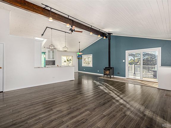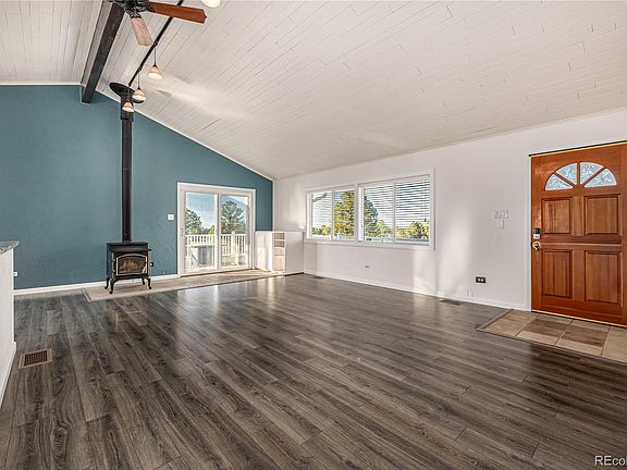 Experience the serenity of Colorado living in this beautifully appointed 4-bedroom, 3-bath ranch-style retreat, gracefully nestled among towering ponderosa pines on gently rolling hills. Offering the perfect blend of seclusion and convenience, this peaceful haven feels worlds away yet remains minutes from Southlands and other amenities. Step inside to discover a light-filled, open-concept interior with vaulted ceilings, a cozy wood-burning stove, and a skylight kitchen that radiates warmth and natural light. The kitchen is a culinary centerpiece — featuring custom cabinetry with soft-close doors, granite countertops, stainless steel appliances (including a double oven and trash compactor), wine storage, and extended workspace for both daily living and entertaining. The expansive wraparound deck invites you to take in sweeping views of the hills and mountains — an idyllic backdrop for outdoor gatherings around the built-in fire pit. The main level offers two bedrooms, including a spacious primary suite with ensuite bath, a secondary bedroom, powder room, and a charming cedar-lined hall closet. The walkout lower level offers two additional bedrooms, a full bathroom, recreation room, and laundry area — all opening to a generous patio ideal for relaxing or hosting guests. Outdoors, the property shines with a flourishing raspberry patch, raised garden beds (rhubarb & onions thriving), blooming bushes, and perennials, all protected by deer fencing to preserve your private garden oasis. Additional highlights include RV parking (no HOA), a two-car attached garage, and plenty of space to unwind and explore. A detached workshop completes the offering — fully equipped with electricity, a large workbench, commercial-grade shop vacuum, and separate storage room — ideal for woodworking, hobbies, or creative pursuits. For those seeking modern comfort and peaceful country living, this exceptional property delivers an unmatched lifestyle surrounded by nature’s beauty.