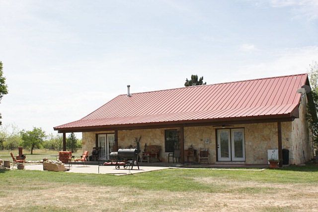 Don't miss this hidden paradise minutes from town. 10+ acres with an amazing 3 bed, 2 bath ranch style home, large gourmet kitchen, vaulted ceiling with spectacular windows and natural lighting. Austin stone exterior, metal roof, crossed fenced, extra storage building. Enjoy the oversized back porch partially cover with a beautiful rock fountain. Endless cool breeze on pastures that are open and clean with lots trees and wild flowers.