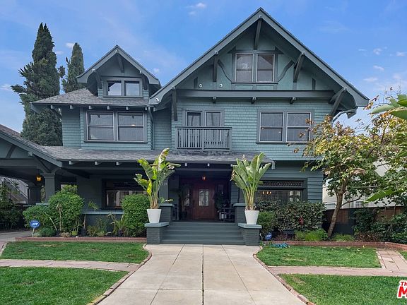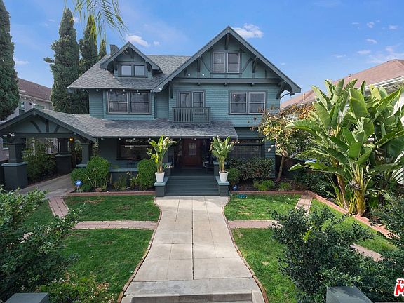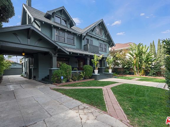 This lovely two story craftsman has been elegantly maintained and updated. The glossy hardwood oak floors, original crown molding, wood beams and living room fireplace invites you into the character of this era. Off the living room is the formal dining area and tiled kitchen with granite countertops, newer wood cabinets, washer and dryer as well as a California Basement. The downstairs bedroom is turned into a sun room and can be used as an office, nursery or bedroom. The beautiful wood stairs leads up to the five bedrooms and three bathrooms. Recessed lightings throughout the house and dual climate control HVAC for the up and downstairs. New plumbing(copper) and electrical system. The backdoor leads to a beautiful covered porch and a lushest family garden. There are over 15 variety of fruit trees and flowers in the front and backyard. The two car garage with an automatic security gate in front. This spacious home provides peace and tranquility for the right family
