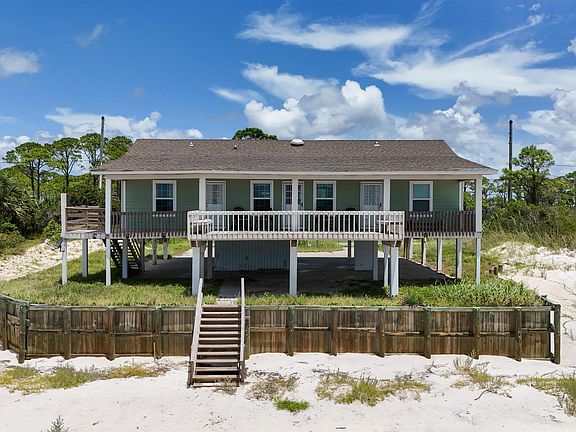 Stunning home on the beach on Alligator Point. A must see. This home is very unique with a lot of extras. Views are incredible. Quiet and refreshing. Porch is ideal place to have coffee in the morning and watch the Dolphins or have wine/cocktails in the evening and watch the sunset. Great location! Close to lots and lots of amenities. This one won’t last long. New AC approximately 18 months ago. Appraisal completed. All room dimensions are approximate.