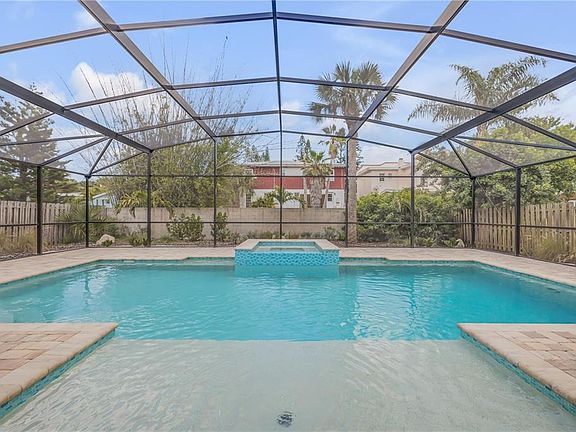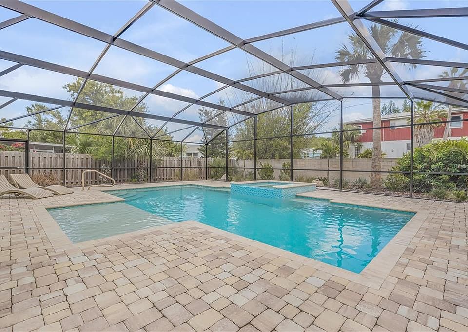New Vacation Rental Heated Pool home with heated spa and sunning deck in pool in North Beach area of New Smyrna Beach that is available March 24th thru November 1, 2025 The heated pool is perfect for the months in Fall, Winter, and Spring. The pool enclosure keeps the temperature of the pool low. Home is available starting May 2026 and through out the year of 2026! Rental rates are as follows for certain months of the year. December and January $6000, February $7500, March and April $8000, May $5000, June and July 2025 $6000, August through November $4000. Each rental will have a $75 booking fee, $300 cleaning fee, and tourist taxes of 12.5 percent for total rental amount. Renting multiple months will give you a discount! After 1 month, you will receive $100 off per additional month. For example, $200 off each month rental rate if rented for 3 months. Come visit this beautiful 3 bedroom/ 2 bath pool home located in the heart of the island of New Smyrna Beach! Quick 2 block walk to the beach. Only a mile from the Famous Flagler ave with all of the best restaurants, shops, and nightlife. Brand new in 2023 15' x 32' saltwater pool complete with a heated spa and a sun shelf that will allow you and your family to enjoy your stay in New Smyrna with an outdoor shower. This rental comes with the first $200 worth of utilities to heat the pool per month. The difference will be paid by the tenant. The home has everything you need to enjoy your vacation and very close to everything on this unique island lifestyle with 13 miles of coastline. Rent a golf cart and enjoy yourself on the island. You are a couple of blocks to the Sapphire Beach access and the famous intracoastal for beautiful sunsets. This home has 3 bedrooms, 2 full baths, a bonus sunroom, living room, storage utility room for all your beach toys, ensuite bathroom in the master with a shower and a tub in 2nd bathroom. There is a king bed in master bedroom, queen bed in 2nd guest bedroom and a daybed in the third room. This vacation rental comes with Beach chairs, beach bag, beach cooler, umbrella, and surfboard. There is the best surfing on the east coast of Florida located at the Inlet 1.5 miles awhile at The Smyrna Dunes. The backyard is the perfect oasis to relax by the pool, great landscaping, and patio furniture. The home is perfect for 2 families on vacation together or one large family. This home is a newly listed vacation home.