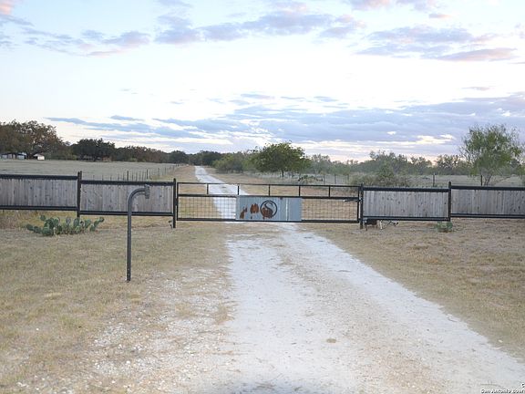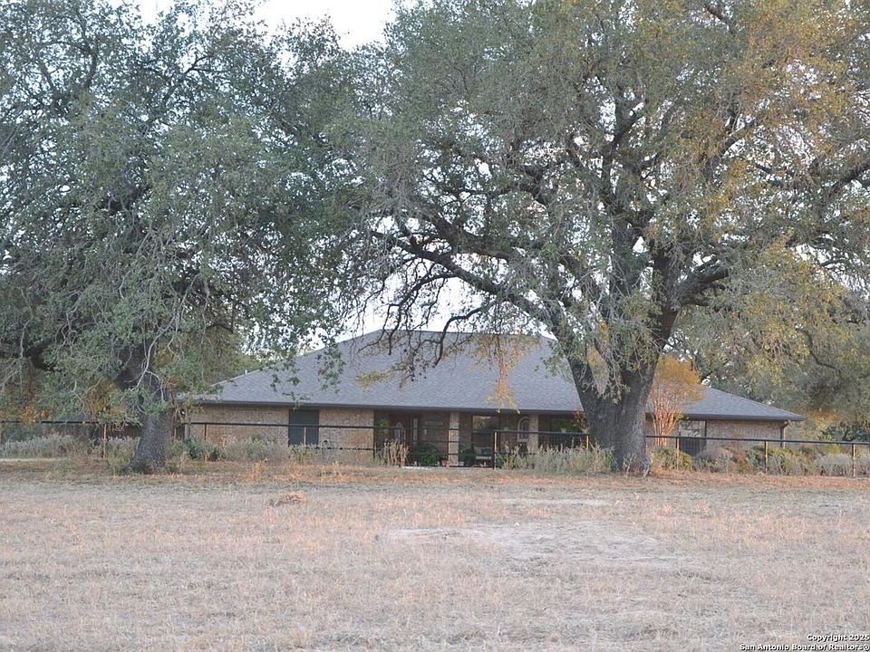 Escape to the peace and privacy of country living with this stunning 5 bedroom, 4040 sq. feet estate nestled on 18 unrestricted acres of scenic land. Surrounded by mature oak trees and open skies, this spacious home offers the perfect balance of comfort, space and freedom - weather you are looking to entertain, unwind, or enjoy the outdoors. Step inside to discover a warm and inviting layout featuring two generous living area, a wood-burning fireplace in the family room, and a formal dining room perfect for holiday gatherings. The open-concept kitchen is a chef's dream, offering plenty of counter space, modern appliances, and a seamless flow into the family room. The home boasts 5 bedrooms, 3 full bathrooms, and a private guest suite with full bath and kitchenette ideal for visitors, multi-generational living or a home office. With over 4000 sq. feet of well-planned living space, there is room for everyone. Outdoors, enjoy a large fenced yard, attached two car garage, concrete pad for additional parking. There is ample for animals, gardening or future expansion. There is also a large detached brick store room with electric for a work shop! This land in under current ag. exemption, and unrestricted - giving you freedom for build, farm and also hunt. There is an amazing high point with beautiful views and stunning South Texas sunsets! A rare find for sure!