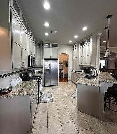 Gas grill on patioUpscale ceiling heightNew springsOpen floor planSplit bedroom designModern cabinetsLarge walk in closets