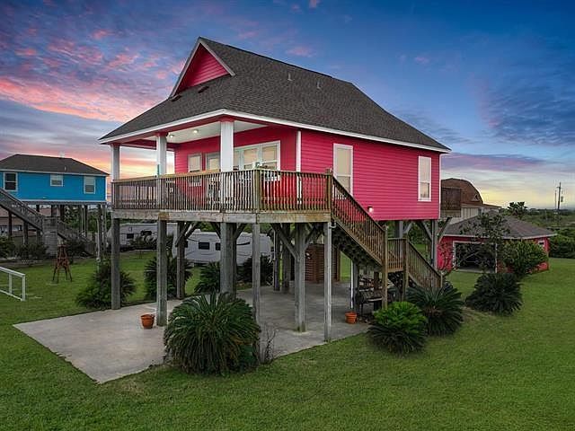 Welcome to your coastal escape in Bolivar! This 2-bedroom, 2-bath home offers relaxed seaside living with unbeatable views of the Gulf, the bay, and Horseshoe Lake. Step inside to an open, airy space filled with natural light and salty breezes. Enjoy your morning coffee on the balcony as the sun rises over the beach, then wind down in the evening with sunset views over the lake. Located just one mile from the Bolivar Ferry, you’ll have quick access to Galveston and easy island adventures. Next door, the historic Fort Travis bunker adds a touch of local history and character to your surroundings. Whether you’re looking for a weekend retreat or a full-time coastal home, this property offers comfort, charm, and endless views.