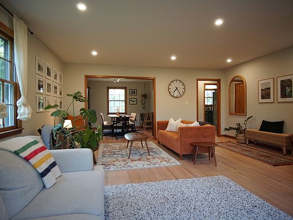 Back porchNewly renovated bathroomOriginal refinished hardwood floorsNew flooringFreshly painted cabinets