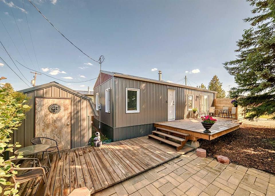 BACK ON THE MARKET DUE TO FINANCING! ... Welcome to this enchanting one-bedroom, one-bathroom mobile home in Crossfield, nestled in a friendly mobile home park where neighbors become friends. Ideal for a couple or single individual, this home combines modern amenities with fairy tale charm. Completely renovated from the ground up in 2021, it features updated PEX plumbing, a new hot water tank, durable metal roof, energy-efficient furnace—all installed in 2021—along with modern kitchen counters and cupboards. The reliable fridge was added in 2018, and the brand new electric stove, installed in 2025, offers the option to switch to gas. The inviting foyer leads to a fully upgraded, open kitchen with ample space, and a cozy living room filled with natural sunlight. The elegant 3-piece bathroom is a sanctuary of relaxation, complete with bright, energizing lights on the mirror to start your day right, and a smartly designed stacked washer and dryer to maximize space. The tastefully decorated bedroom offers ample room for your furniture. Step outside to your private oasis—a spacious deck perfect for enjoying your morning coffee or unwinding at sunset, surrounded by the tranquility and privacy you crave. Two electrical sheds provide ample storage space. Located just a short 12 minutes from all the shopping and food amenities in Airdrie, convenience is at your doorstep. Included in the $575.00 Pad Rent is Landscape, Snow Removal, Water, Sewer, Garbage and Recycling. Park approval is required for pets, and a meeting with park owners is necessary upon application to purchase. This home is sure to impress and won't last long, so call your favorite realtor today and book a showing!