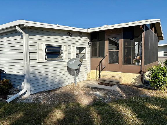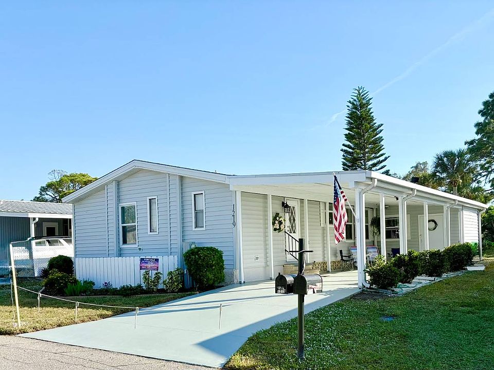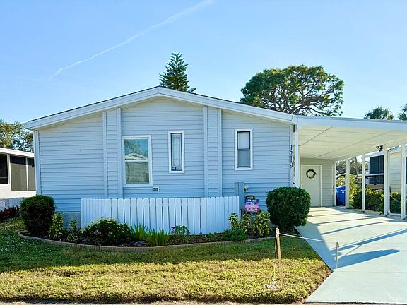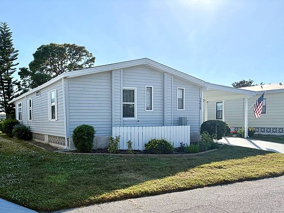 Imagine celebrating the holidays just minutes from the beach, surrounded by the warmth of Florida's coastal breezes. This big, beautiful, fully furnished turnkey home is set in one of the most desirable parklike settings at the back of Bay Indies, located at 1219 North Indies Circle. With countless updates and a fresh modern look, this spacious two bedroom, two bath home offers everything you need to settle in right away and even be at the pool for the holidays. The exterior features vinyl siding, an extended carport with new beadboard ceiling, freshly painted driveway, and electric setup for lights or a fan. A cleverly positioned box provides charging for a golf cart with a designated parking spot, while the oversized shed includes a workshop on one side and a stacked washer and dryer with laundry space on the other. Outdoors, you'll enjoy the Florida weather with a flag waving in the warm breeze. From the moment you arrive, the home's graceful exterior sets the tone: vinyl siding gleams in the sun, an extended carport shelters your arrival, and a freshly painted drive with beadboard ceiling overhead creates a welcoming approach. Thoughtful details abound, from the clever golf cart charging station and parking nook to the oversized shed with its dual-purpose workshop and laundry space. Every corner has been designed to enhance convenience while maintaining beauty. Inside, the entryway offers a large coat closet and an alcove perfect for a desk, with the option of moving the washer and dryer indoors. The curved kitchen is a highlight with granite countertops, a farmer's sink overlooking a window, stainless steel appliances, updated outlets, and an extended counter with stools and passthrough to the dining area. Crisp white cabinets have been freshly painted, and vaulted ceilings add to the open feel. Luxury vinyl plank flooring runs throughout with wide molding, while the baths feature tiled floors. The dining room is furnished with a table and chairs, a built-in credenza with cabinets above, and a bank of windows that fill the space with light A newer shingled roof and A/C installed in 2021, along with double paneled doors, provide peace of mind. The dining room, bathed in natural light from a bank of new windows, is adorned with a built-in credenza with above cabinets and dining table, offering a refined space for gatherings. The living room is equally inviting, furnished with a sofa, recliners, and a mounted TV, while a dedicated office nook provides flexibility for work or leisure. The guest bedroom, with its double closet and ample space, ensures comfort for visitors, accommodates a queen bed with presently having a trundle bed with furnishings, while the guest bath sparkles with a new vanity, commode, tub/shower combination and tiled flooring. The primary suite is a sanctuary, with a queen bed and room for a king sized bed, a deep double closet, and a luxurious ensuite featuring granite counter, an undermount sink, and a wet room with walk-in shower, flush and plenty space for linens and towels. Perhaps the crown jewel of this home is the rear lanai - one of the most spectacular spaces is off the living room. This retreat is framed by tinted plexiglass sliding windows and screens, a table and chairs where you can dine, play cards, or simply bask in the lush greenspace views. Beyond your doorstep, a world of amenities awaits: three heated pools, kayak storage and launch, tennis, pickleball, bocce, and a three-mile paved trail. A full-time recreational director curates over 300 clubs and activities, from concerts and dinners to fitness classes, gym and cultural events. All listing information given to us is considered appropriate and reliable but should be independently verified through personal inspection by appropriate professionals. Home must be maintained to the Community Prospectus. The lot rent is determined by the Community office and covers all amenities offered including property taxes and lawn maintenance.