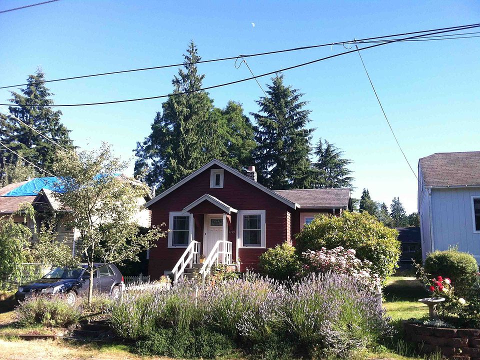This red gem is all heart. Enter the large main living room with hardwoods, coved ceilings and wonderful light. Off the main area, a bonus room with fir floors that makes a great office/nursery. There is a large, light filled, eat-in kitchen and a remodeled bathroom and spacious bedroom. Downstairs offers 2 additional large finished rooms, utility area and storage. The back deck is perfect for entertaining and enjoying the oversized lot. There is even an alley to add a garage in back. Enjoy!