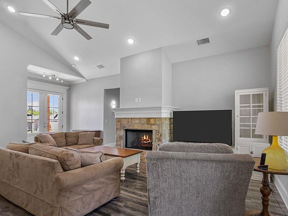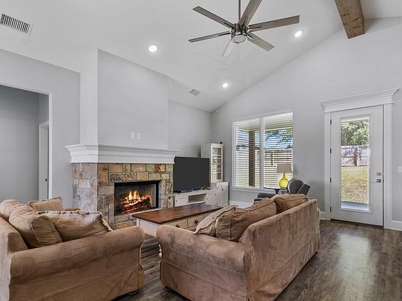 Rock fireplaceLots of natural lightOpen floor planGranite counter topsOversized walk-in showerSoaking tubFenced backyard