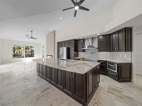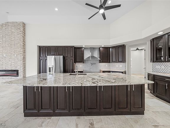 Stunning Full Home Remodel located on an EXTRA WIDE and DEEP WATER Direct Gulf Access Canal in the prestigious Tarpon Point area of SW Cape Coral’s renowned Unit 64, one of Florida’s most desirable boating neighborhoods. Virtually a New Home, completely remodeled in 2025 inside and out, this 2,704 SF residence with over 4,556 total area features 3 bedrooms, 2 bathrooms, and an oversized 2-plus-car garage with additional space for a golf cart, motorcycle, or workshop. Renovations completed in 2025 include a new metal roof, new exterior and interior paint, new pool screen enclosure and super gutters (Oct 2025), and a fully renovated kitchen, bathrooms, trim, and lighting throughout. Step inside to soaring ceilings, travertine flooring, and breathtaking views of the water. The open living space includes an elegant feature wall with an electric fireplace, creating a warm space for entertaining or relaxing. A custom wet bar with stacked stone and an underlit countertop is a showstopping entertainment space for guests and visitors. The chef’s kitchen is the heart of the home, showcasing custom cabinetry, high-end countertops, and luxury appliances, and is open to the living areas. The primary suite opens to the pool and water, offering a spa-inspired bath with a walk-in shower, dual vanities, a designer soaking tub, and underlit countertops for a resort-like experience. The guest bedrooms are privately situated at the opposite end of the house, each designed for comfort and style. Step outdoors into your private tropical oasis, complete with a resort-style pool, rock waterfall spa, and expansive under-truss lanai ideal for outdoor dining and sunset lounging. Enjoy serene water views, gentle Gulf breezes, and the parade of boats navigating the Gloria Canal. Positioned on an extra-wide and deep Gulf access canal, this property offers no bridges, no locks, and quick open water access to the Caloosahatchee River, Sanibel Island, and the Gulf of Mexico. Located on a quiet cul-de-sac, this home provides a rare blend of privacy and proximity, just minutes from Tarpon Point Marina, The Westin Resort, and Cape Harbour, offering premier waterfront dining, boutique shopping, and entertainment at Gather, Rumrunners, Marker 92, Fathoms, Oyster Bar, and The French Press. Nearby are the revitalized Yacht Club Beach and Marina, Bimini Square, The Cove, and Slipaway Marina, plus golf at Palmetto Pines and Coral Oaks. Whether as a full-time residence, seasonal retreat, or luxury vacation rental investment, this home delivers direct Gulf access, deep water canal frontage, modern finishes, a new roof, pool and spa, and an unbeatable location surrounded by Cape Coral’s best waterfront developments. This is more than a remodel; it is a complete transformation designed for those who value modern luxury, effortless boating access, and the best of Southwest Florida coastal living.