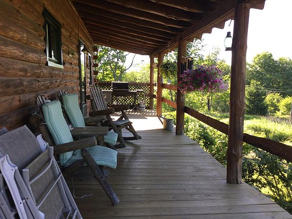 Log home on 30+ acres of peace & tranquility. Lots of trails to explore, gorgeous pond & plenty of wildlife. Wraparound porch perfect for entertaining, relaxing or star gazing. Open floorplan downstairs with exposed timber ceilings.