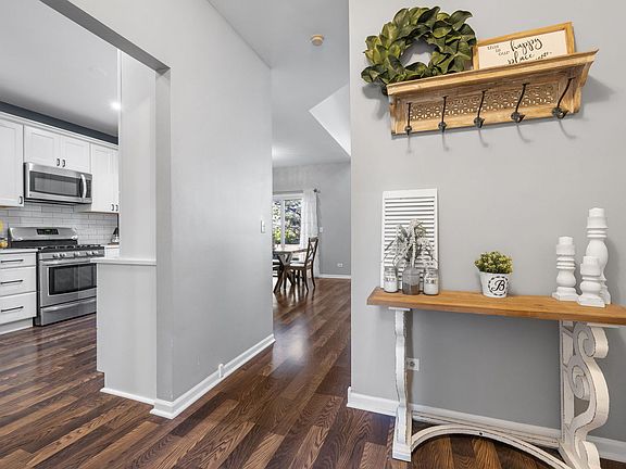 A picture perfect Lancaster model that you can drop your bags and move right into! As you arrive, you'll notice the updated flooring, paint and white trim, which flows throughout the entire home. Walk straight through to the living room with a vaulted ceiling, skylight and fireplace, which is the focal point of the room. An ample dining area gives you room to host and for everyday meals. Continue through to the updated kitchen--counters, cabinets and backsplash done in 2023, with stainless steel appliances and updated lighting that was added by the current owners. An extra eating area, currently used as a "drop zone" is a flexible space to use for your living needs, with an adjacent mechanical/laundry closet. A powder room completes the first level. Upstairs, you are greeted by a loft, which can be converted into a 3rd bedroom, or used for upstairs living, work, or workout space. Continue into the vaulted master bedroom, which features a walk-in closet and a vaulted bathroom, updated in 2021, with a soaking tub, dual sink vanity and separate shower. Back down on the main floor, 2 sets of sliding doors lead you out to the stamped concrete patio and shared green space. HOA just replaced the siding and roof in 2023! This pet-free home is conveniently located with IPSD 204 schools and easy access to everywhere you need to be! Don't miss out on this early October surprise!! Rentals are allowed, but there is a rental cap.