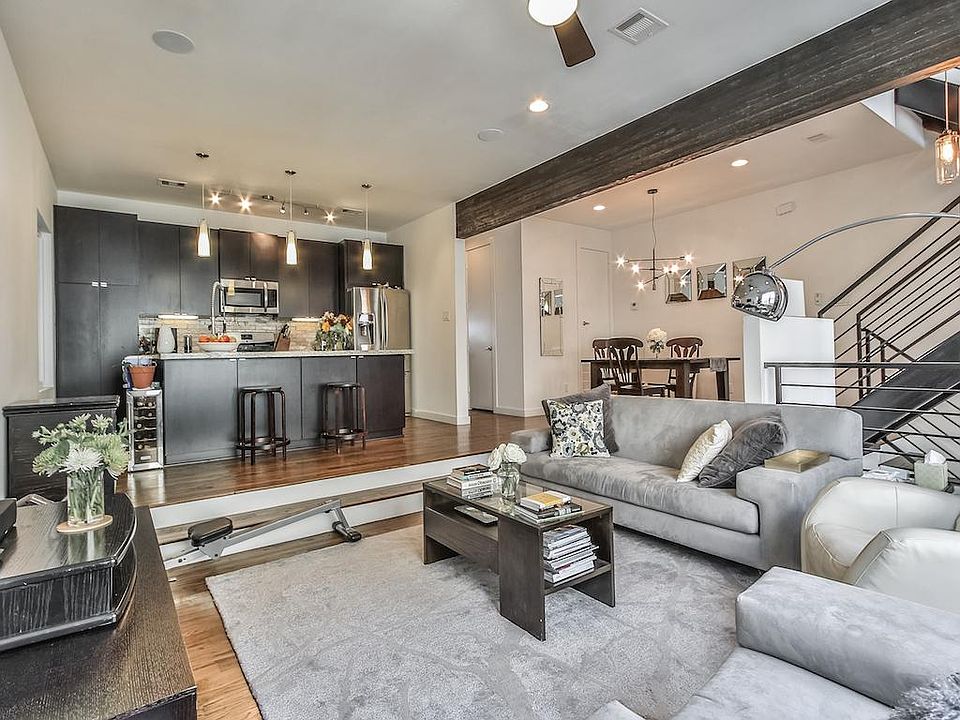 Take advantage of what this city has to offer by living in this modern home steps away from so much action! Great curve appeal, two door garage and three story townhome. The first floor boasts beautiful travertine floors, with a private bedroom that not only has a full bathroom but also has access to a peaceful patio. The second story is a very spacious open layout with stunning wood floors. The dining room leads you to your own private bar with a wine cooler and a half bathroom. The kitchen, right next to the dining room, has beautiful granite countertops and a large island that can serve as a breakfast bar and a great entertaining area for friends and family. The living area has an immense window with custom made window treatment along with beautiful lighting fixtures. Lastly, the master bedroom, which is on the third floor, has a large private balcony, a very large closet, and a modern bathroom which includes his/hers sinks, and a rainfall shower. As an added bonus, the washer/dryer are also on the third story for great convenience.