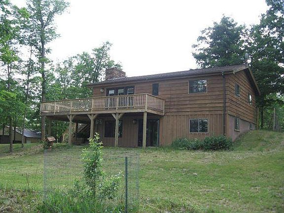 Move right in to this 3+ bdrm, 2 bath (one with jacuzzi), Hickory cabinets, hardwood floors, carpet & ceramic tile, new updates throughout, see office for a list. Plus new roof, deck, windows, furnace, plumbing throughout. Cute home, walkout bsmt, 3 car garage, wooded lot with tulip & iris gardens, lilacs, apple trees & more! Must see! Compliant septic as well.