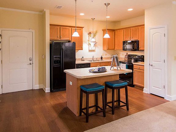 Designed with a modernized arts and craft style, all residential buildings surround a pristine three-acre lake featuring walkways, lighted fountains, and professional landscaping. Dramatic archways invite you inside your apartment home with lofty nine-foot ceilings and a spacious open design. The chef-caliber kitchen makes both entertaining and everyday cooking a pleasure while the personal spaces offer luxurious baths with soaking tubs and generous walk-in closets. The fully appointed 6,300 square foot clubhouse, the "North Beach", features a health club with cardio theater and cyber cafe with computers, complimentary Wi-Fi and gourmet coffee and hot tea bar. Refresh and renew in the "Award Winning" beach-style resort swimming pool and hydrotherapy spa. Tennis buffs can sharpen their backhand on the lighted tennis court and golfers can test their read on the sloping six-hole putting green. The outdoor fireside lounge, complete with summer kitchen and al fresco dining area, awaits your grilling skills. The "North Beach Terrace" offers a quiet place to unwind and reflect. Close your book and watch the colorful sunsets from this getaway setting and let your magical evening begin. You can have it all at North Beach on Kernan.