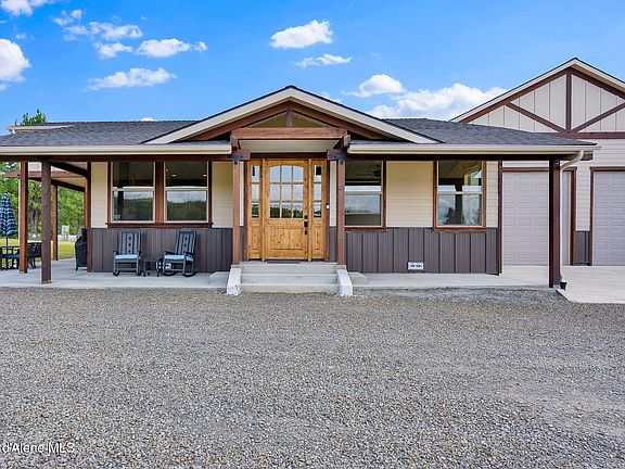 Discover this exceptional home & shop sitting on 20 acres that perfectly blends meadow & timber landscapes. The property features an open concept design with a dream kitchen including a primary suite with a beautiful bathroom with walk-in shower & spacious closet. The wraparound porch offers stunning views of the surrounding natural beauty, making it ideal for morning coffee or evening relaxation. The incredible fully finished 2840 square foot heated shop provides endless possibilities. Inside, you'll find thoughtfully designed spaces including another bedroom, office or bonus room, plus a dedicated craft room. Additional outbuildings include a 3 bay shed for tractor or equipment parking & a charming chicken coop. It offers a fenced garden with raised beds, separate dog run, & convenient RV hookup.. This unique offering combines comfortable living with with practical amenities in a serene setting that's both private & accessible to amenites & recreation like Lake CDA & Bike Trail!