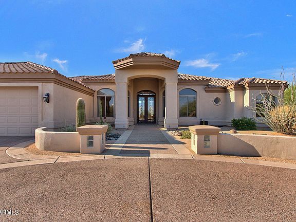 Bring your horses! Amazing Horse property situated on almost an acre w/ unobstructed views of the Mcdowell Mountains. Perfect custom home built for living & entertaining w/a great floor plan. 4 lrg bdrms,+ office, 4 full baths, LR, DR, FR w/ wet bar,+ 4 f/p's! Expansive backyard featuring salt water pool & spa, huge patio, and potential to add sport court, casita. Great location tucked in for privacy but very close to Mayo Clinic and Honor Health, top rated A+ schools including BASIS, as well as shopping and restaurants. Horse amenities include 3 stalls, tackroom, pyranha fly system, 2 turn outs, sep driveway to barn, rv gate. Ride your horses to Stonegate Equestrian Park or the unlimited trails right outside your front door! This property includes add' piece of land used as 2nd turnout