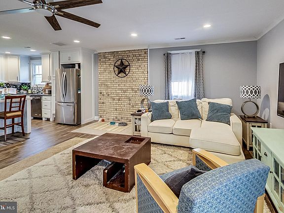 Welcome to this exquisite one-level home situated on a generously sized .44-acre corner lot. Boasting four spacious bedrooms, this home is perfect for growing families or those who enjoy ample living space. Entering this home, you will step into the foyer and find one of the large bedrooms to your left, that could also be used as a private office or den, with wide “pocket” doors and a ceiling fan. Moving down the hall and to your left, you will step into the open-concept kitchen and living areas. The upgraded kitchen features Stainless appliances, an oversized center island, and gorgeous Quartz countertops, perfect for cooking and entertaining. Off to the right you will notice the beautiful living area complete with recessed lighting, a decorative brick wall and a sliding glass door that leads to the bright sunroom. The living area is spacious enough to allow for a separate dining area as well. As you make your way back through the foyer and down the hallway, you will come across three additional bedrooms, each equipped with generous closet space and ceiling fans. You will be impressed by the two remodeled full bathrooms, complete with modern finishes and thoughtful details. The luxury vinyl plank flooring adds a touch of elegance to the home, while custom crown and baseboard moldings throughout provide the finishing touch. With a two-car detached garage and a fenced-in backyard, you will have plenty of room for outdoor activities and storage. Do not miss the opportunity to experience this luxurious home for yourself! You can purchase this home with confidence; this home comes with a one-year First American Warranty!