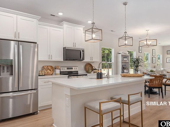 Welcome to Jarvisburg Landing, a premier new community on Currituck’s mainland. Phase 2 features thoughtfully designed 3-bedroom, 2.5-bathhomes with a first-floor ensuite and spacious kitchen with island. Community amenities include a pool and clubhouse, all at an attractive price point. This location offers the best of both worlds—just 15–20 minutes from the Outer Banks beaches, yet tucked away from the busy beach traffic. Local restaurants, shopping, golf courses, H2OBX Waterpark, Sanctuary Vineyards, and Buffalo Distillery are all nearby. The home includes quality construction, modern finishes, and a one-car garage with additional parking. A private back patio provides outdoor living space.Inside, the open-concept main level features living and dining areas, a beautiful kitchen, powder room, and a primary ensuite with tiled shower, dual vanity, and walk-in closet. Upstairs, two spacious bedrooms share a full bath with tub and dual vanity. Jarvisburg Landing has been designed with privacy in mind, preserving mature trees that surround the community. Construction to be finished by mid December.