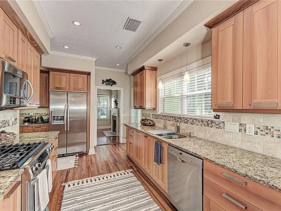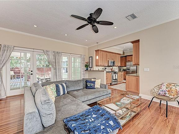 Back on the market. Financing fell through! Florida charm meets historic elegance in this lovely Riverside district home. Completely renovated from top to bottom and reborn in 2007, this home boasts craftsmanship throughout- wood floors, wood cabinets, stone tops, crown molding, solid doors, custom trim, and tile bathrooms will please the most distinguished buyer. The kitchen boasts upgraded stainless appliances and granite countertops with glass tile backsplash. The breakfast bar opens to the family room. The solarium just off the kitchen is an added surprise. The separate formal living room has a wood-burning fireplace. The owner's suite has a generous walk-in closet. The master bath suite has upgraded cabinetry, dual sinks, separate water closet, and a walk-in tile shower and garden tub. The wrap-around rear porch gives way to private backyard oasis which has access to the master bedroom and family room. Separate laundry room with sink and sorting area. This home is just two blocks from the beautiful Manatee River, Riverview Blvd, and the historic boat work town once called Fogartyville. Come live here and make your own history!