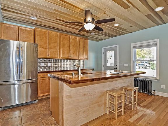 Newly remodeled village colonial home ready to make memories in! The home features two bedrooms upstairs, plus a large master bedroom with deck access and a large bath complete with jacuzzi tub. Downstairs you have a possible fourth bedroom or den/dining room, living room, enclosed front porch and a fabulous huge kitchen with a pressed tin back splash, updated cabinetry, stainless appliances and an over-sized island featuring custom inlaid wooden counter tops. The home has a new roof, vinyl siding and a three car detached garage. The property is fenced on a corner lot.The home was once a two-family, but now is a comfortable one-family home.